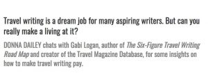 Thanks for visiting! If you liked what you read here and want to share it, please use the social handles above for attribution or reach out to us about using our travel writing lessons in your courses, curricula, e-books or blogs. This content is protected by US and international copyright laws. Reproduction and distribution of the content without written permission is prohibited. Copyright © 2016 to 2024 Gabi Logan owner of Dream of Travel Writing. All Rights Reserved. Website terms of use. Privacy policy. Cookie policy.